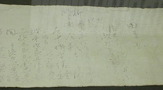 久連子平盛春長(ひらもりはるなが)氏所蔵の由来書には、平清経一行が壇ノ浦合戦後、五家荘に落ち延びてゆくまでの詳しい経路が記載されている。由来書はまず「我等比処へ居住する事後生に至り諸人不思議とする故比巻へ委しく記し置く者なり」と前書きされ、清経以下5人の家臣の名が記されている。さらに桓武(かんむ)天皇の曾孫高望王(たかもちのおう)をはじめ平氏歴代の祖先を列記し、命日を記して忌日を弔うべき事を命じている。年号は寿永13年となっているが、これは改号を知らなかったためである。 5名の家臣・・・平内左衛門家長、越中次良兵衛盛嗣、上総五良兵衛忠光、上総三良左衛門景経、江見次郎盛方