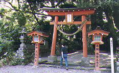 道は間違えていなかったようで、先生に教えていただいたとおりに車を走らせると、その小学校から数分で十根川神社に到着しました。まわりを田圃に囲まれた中に、こんもりと杉の茂った森があり、そこに十根川神社があります。その境内をずっと奥へ進むと(境内の入り口付近にも相当大きな杉の木がありますが、これは八村杉ではないのでご注意!私たちは危うくこの杉を八村杉と見間違えて帰るところでした)、一段高くなった社わきにこの杉はあります。この杉は樹齢800年で、鶴富姫伝説に登場する那須大八郎が植えたと伝えられています。